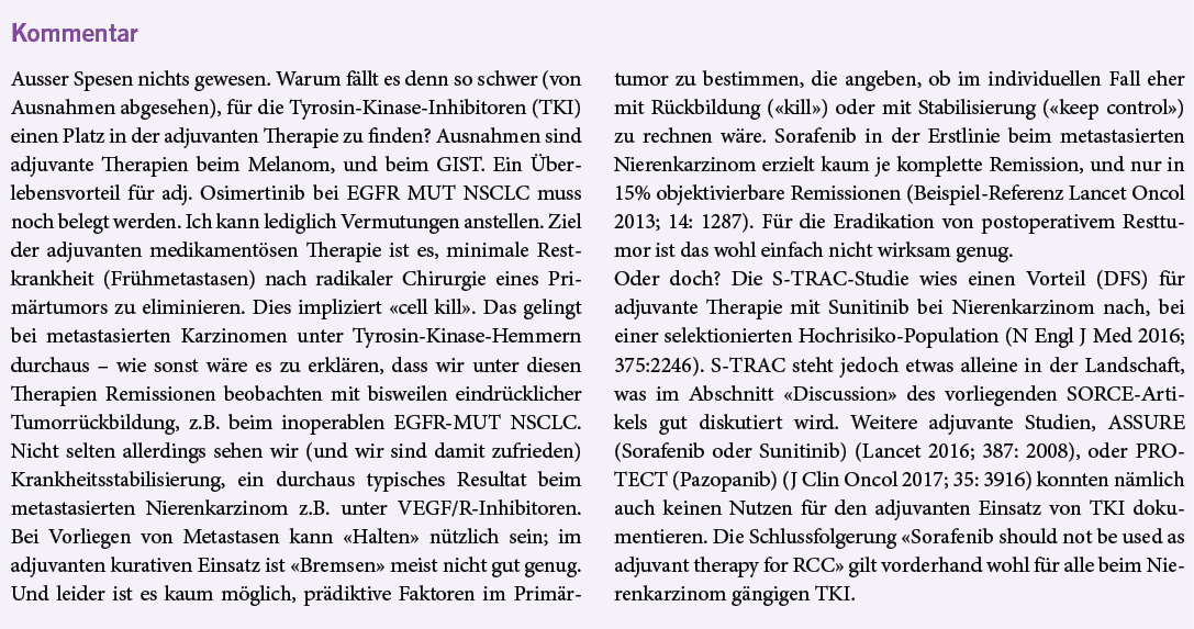 - «Kein Platz für Tyrosin-Kinase-Inhibitoren in der adjuvanten Therapie?»