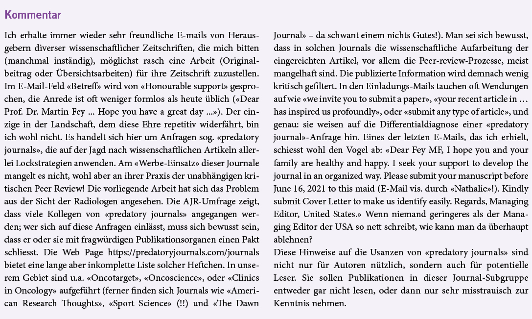 «Publikationen in «predatory journals»: entweder gar nicht lesen, oder dann nur sehr misstrauisch zur Kenntnis nehmen»