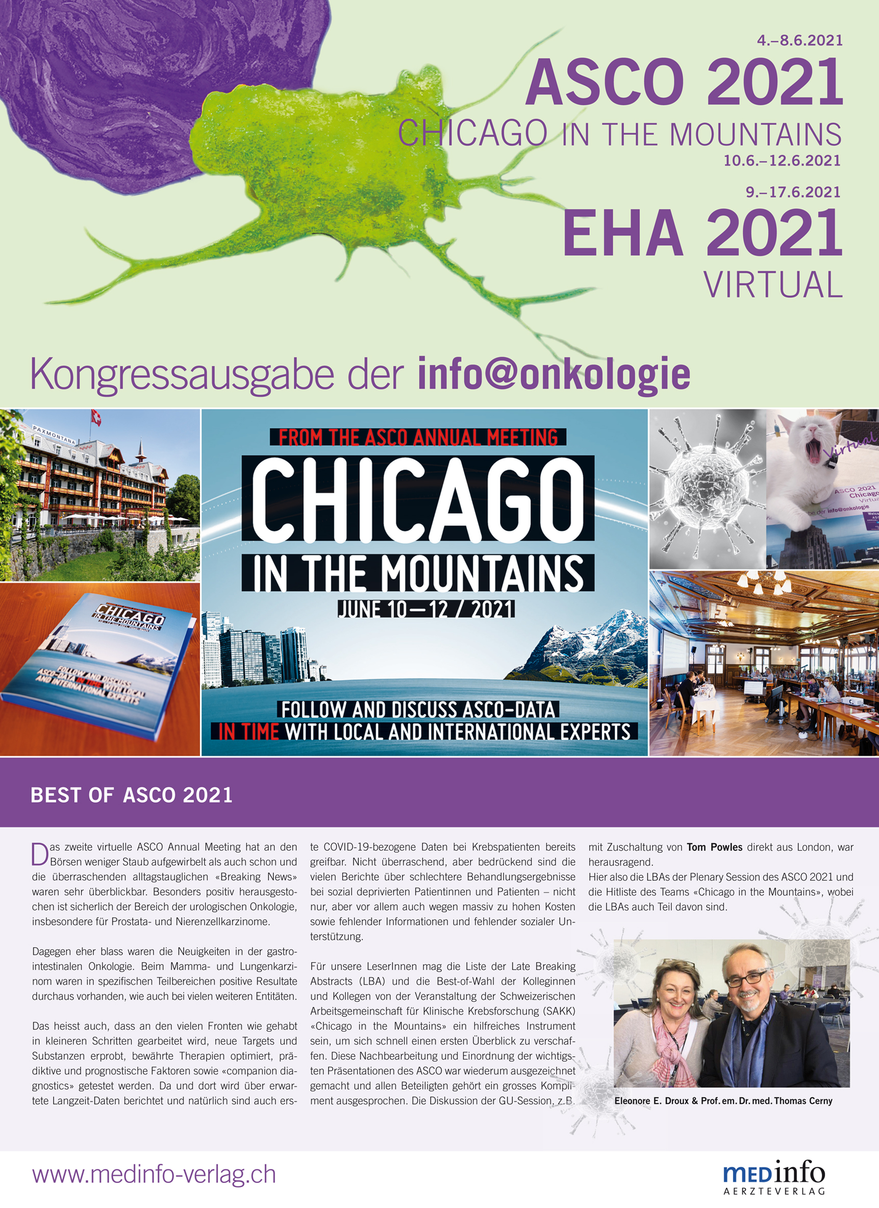 Diese kleine Auswahl von Studien möge Ihnen Appetit machen auf Mehr. Das Redaktionsteam von info@onkologie hat das Kongressgeschehen intensiv verfolgt und das Wichtigste in der vor Ihnen liegenden Zeitung zusammen getragen. Wir wünschen Ihnen viel Spass beim Lesen und einen reichen Gewinn an neuen Erkenntnissen für Ihre tägliche Arbeit.