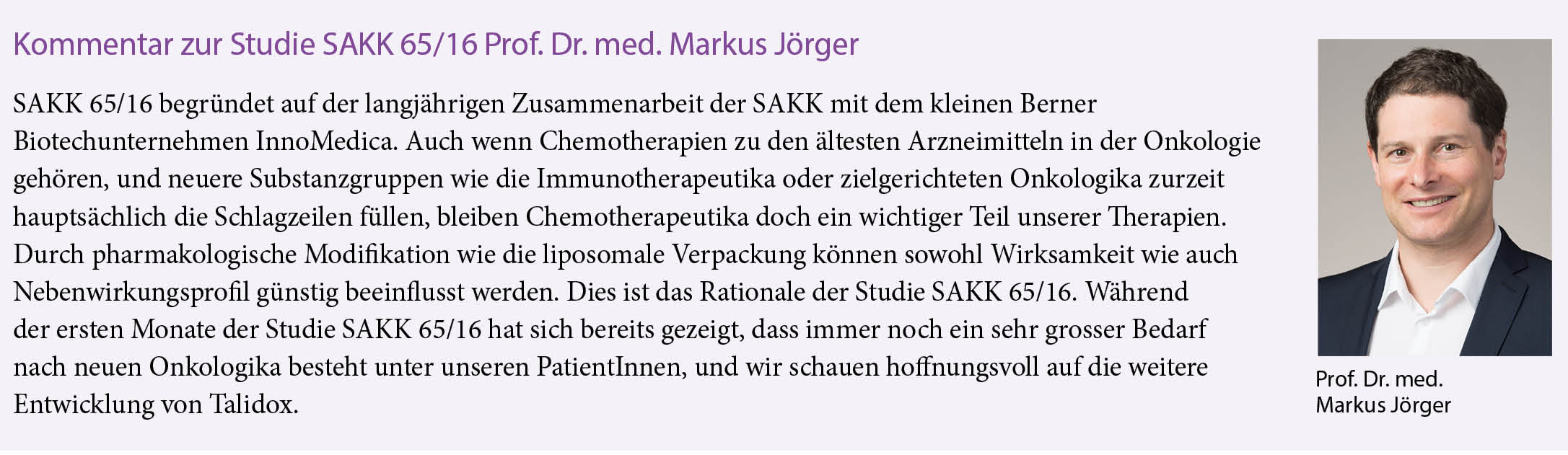 Die Schweizerische Arbeitsgemeinschaft für Klinische Krebsforschung (SAKK) stellt in dieser Ausgabe eine Studie vor. Die SAKK ist eine Non-Profit-Organisation, die klinische Studien in der Onkologie durchführt. Bei Interesse für die hier vorgestellte Studie oder falls Sie eine Patientin oder einen Patienten zuweisen möchten, kontaktieren Sie bitte den Studienverantwortlichen (Coordinating Investigator) oder den Studienkoordinator (Clinical Project Manager).