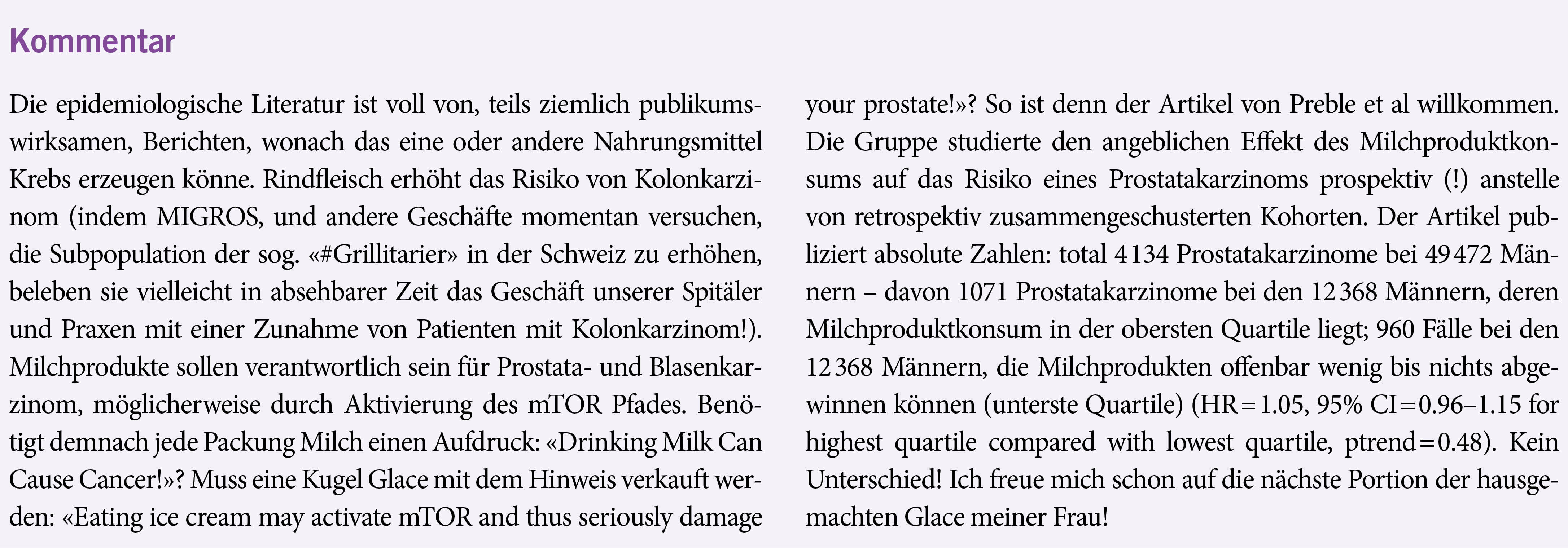 Milchprodukte, Prostata- und Blasenkarzimon