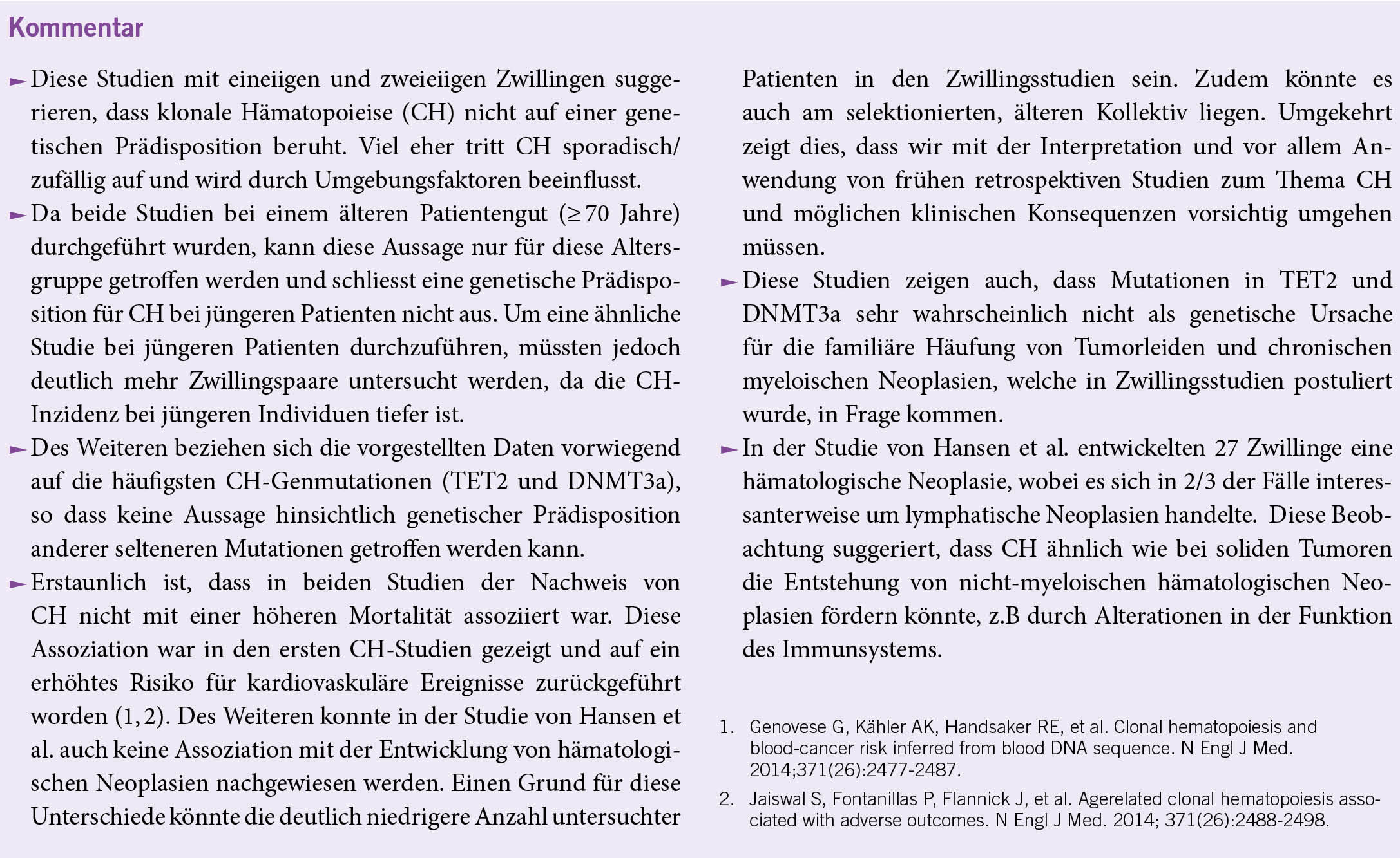 Quelle: Fabre MA et al. Concordance for clonal hematopoiesis is limited in elderly twins. Blood. 2020;135(4):269-273