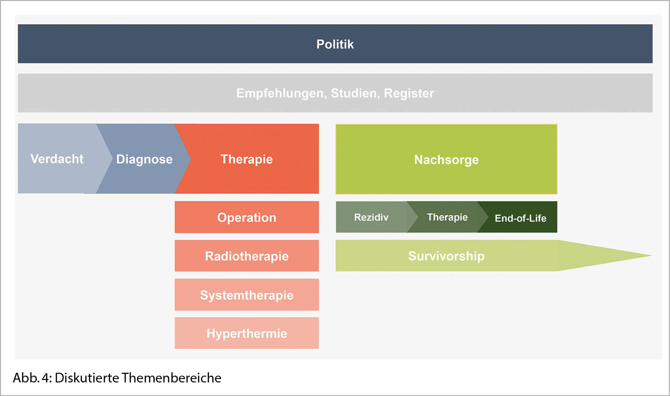 Eine Konsensuskonferenz schien uns für STS umso nötiger, als das Erreichen einer genügenden Evidenz über prospektiv kontrollierte Studien an der Seltenheit der einzelnen STS-Subtypen immer wieder gescheitert ist. Und doch braucht es akzeptierte Vorgehensweisen im klinischen Alltag, verbindliche Therapiestandards und Qualitätsindikatoren. Diese sollen die Grundlage bieten für Behandlungspfade, Verhandlungen mit den Krankenversicherern, für Argumente in der Politik und für die Planung klinischer Studien in internationaler Zusammenarbeit.