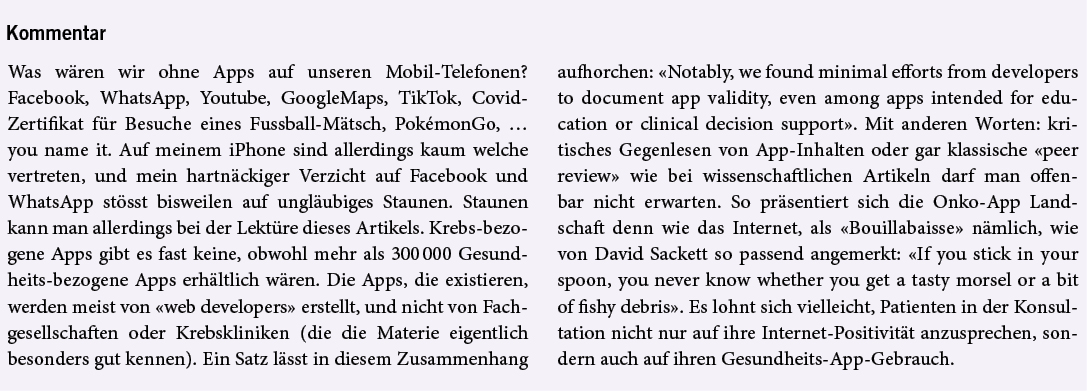 Zusammenfassung: More than 325,000 mobile health applications (apps) have been developed. We sought to describe the state of oncology-specific apps.
