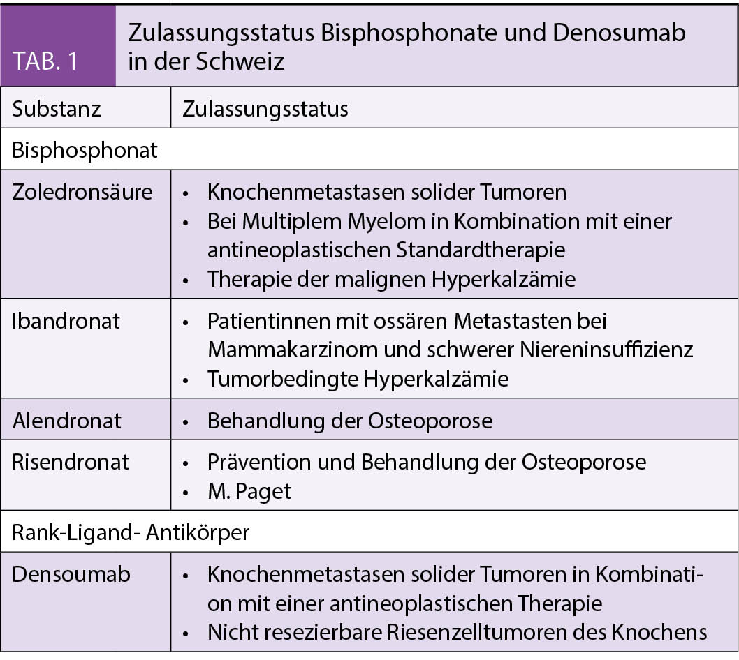 • Der RANK-Ligand-Antikörper Denosumab ist eine Alternative insbesondere bei Niereninsuffizienz, ist aber in der Schweiz für diese Indikation nicht zugelassen.