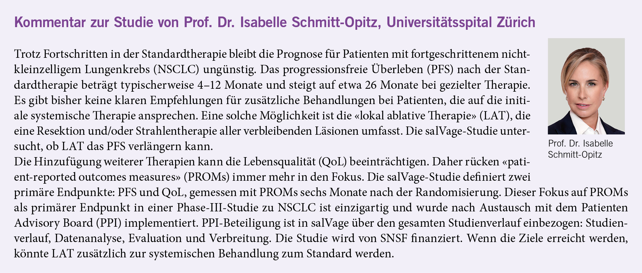 Eine randomisierte kontrollierte Phase-III-Studie zum Vergleich der medikamentösen Krebstherapie mit oder ohne zusätzliche lokale Behandlung (Chirurgie oder Bestrahlung) bei Patienten mit nicht-kleinzelligem Lungenkrebs im fortgeschrittenen Stadium IV («salVage»)