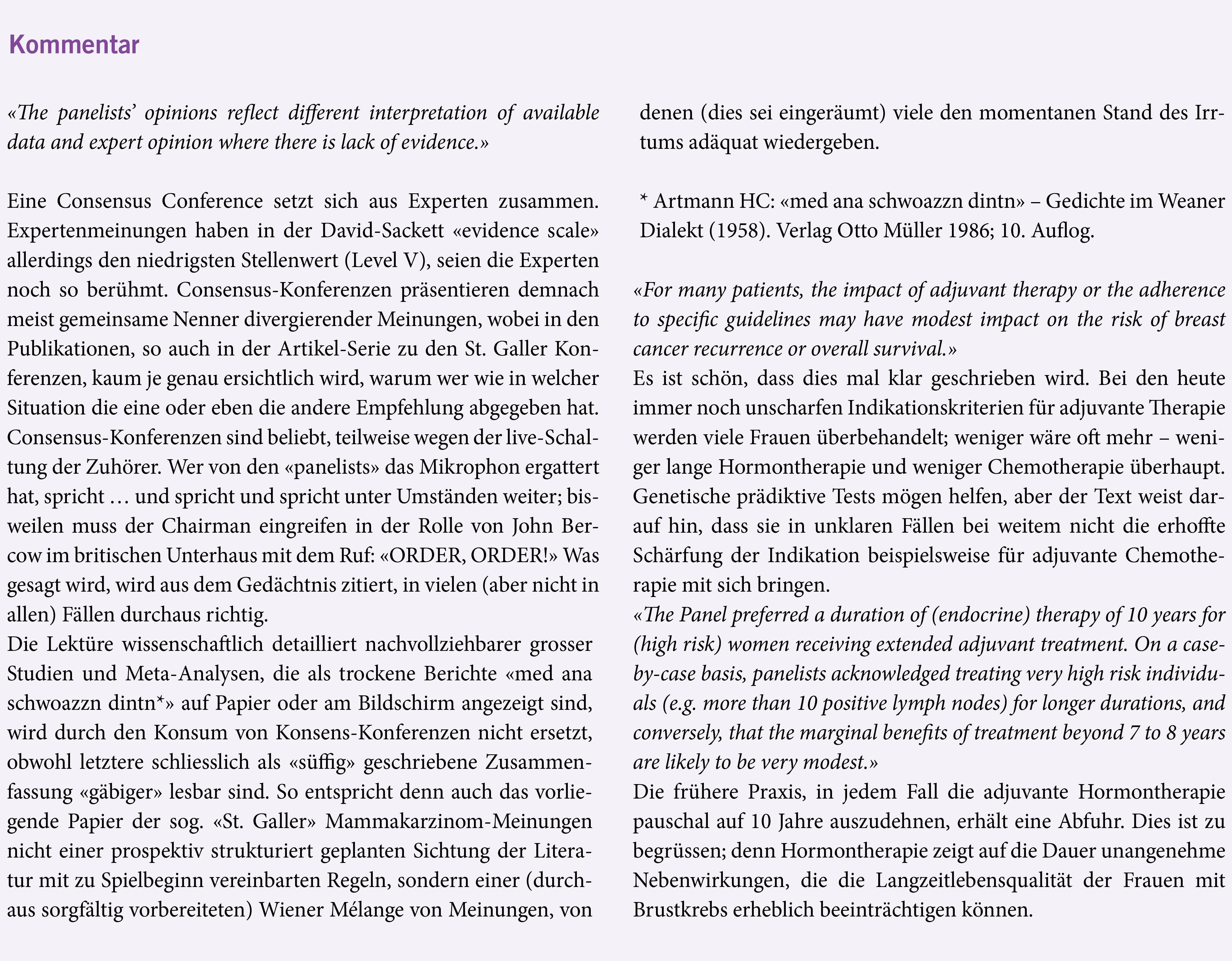 - Schlaglichter auf den St. Galler Breast Cancer Consensus
