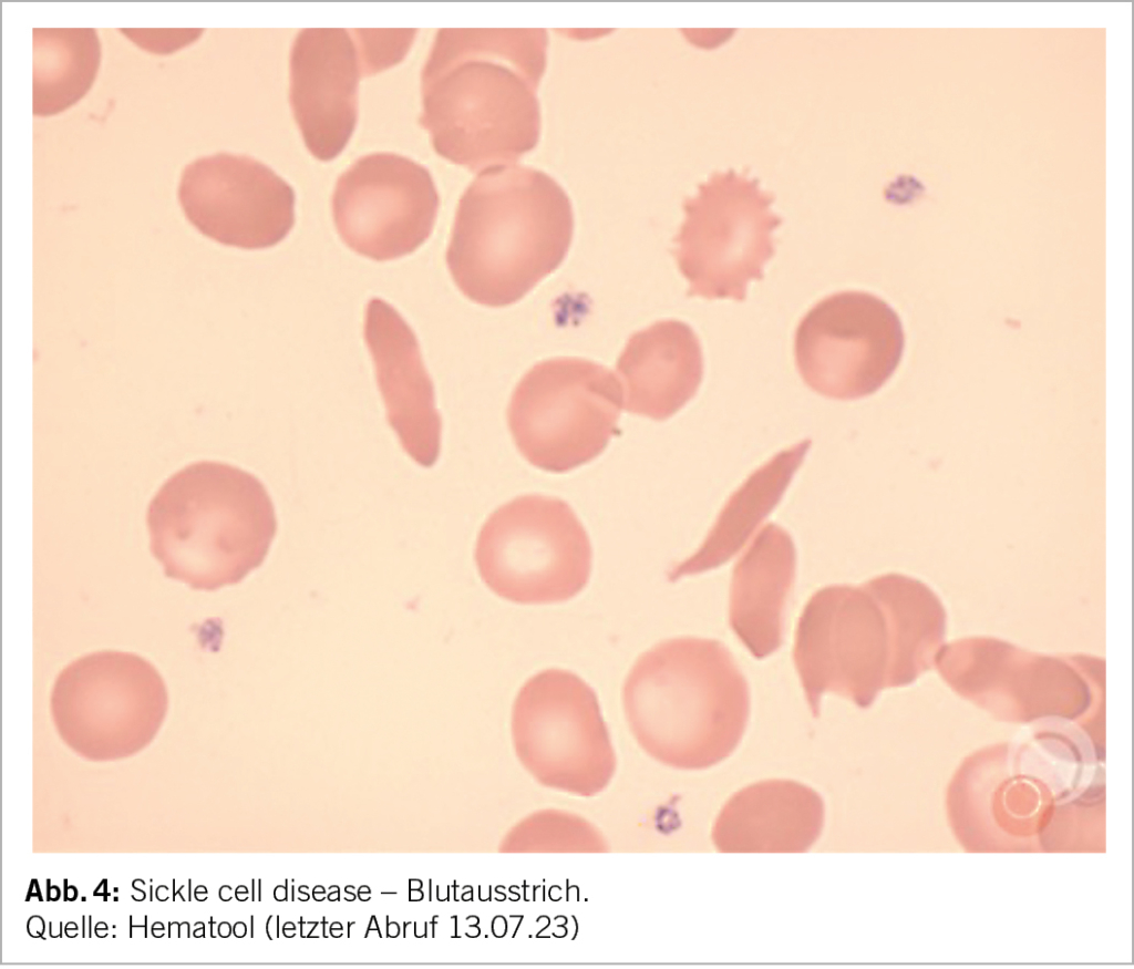 Die Sichelzellkrankheit ist eine angeborene Hämoglobinopathie bedingt durch eine Mutation der ß-Kette des Hämoglobins, dem Hämoglobin S. Bei Sauerstoffmangel kommt es zur Sichelung der Erythrozyten, was eine Adhäsion an das Gefässendothel begünstigt und damit zu akuten Komplikationen der Vasookklusion und zu chronischen Organschäden führt. Die klinischen Manifestationen und die Prognose sind variabel. Das klinische Management ist häufig anspruchsvoll.