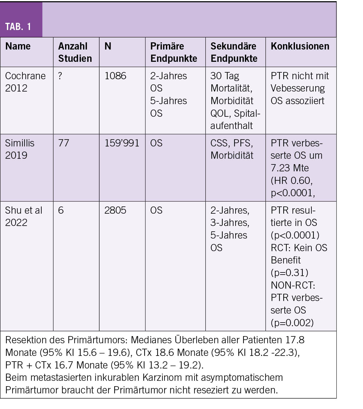 Resektion des asymptomatischen Primärtumors beim metastatischen inkurablen Kolonkarzinom. Muss der Primärtumor reseziert werden? Dies wurde in einem systematischen Review und Metaanalyse (Weitz et al, ASCO 2022) untersucht.