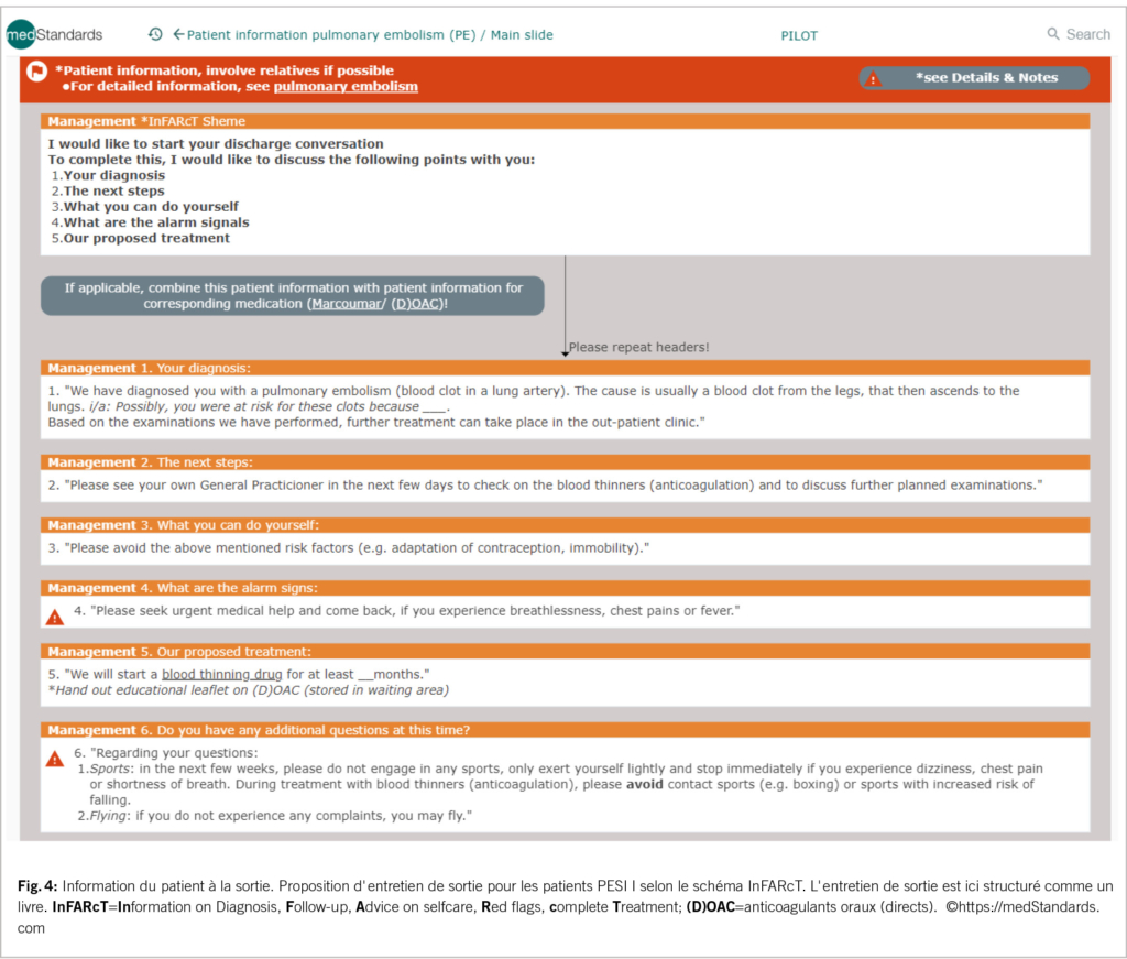 Pour un traitement ambulatoire, outre l’ évaluation des risques, l’ infor­mation du patient avant la sortie est également importante (fig. 4).