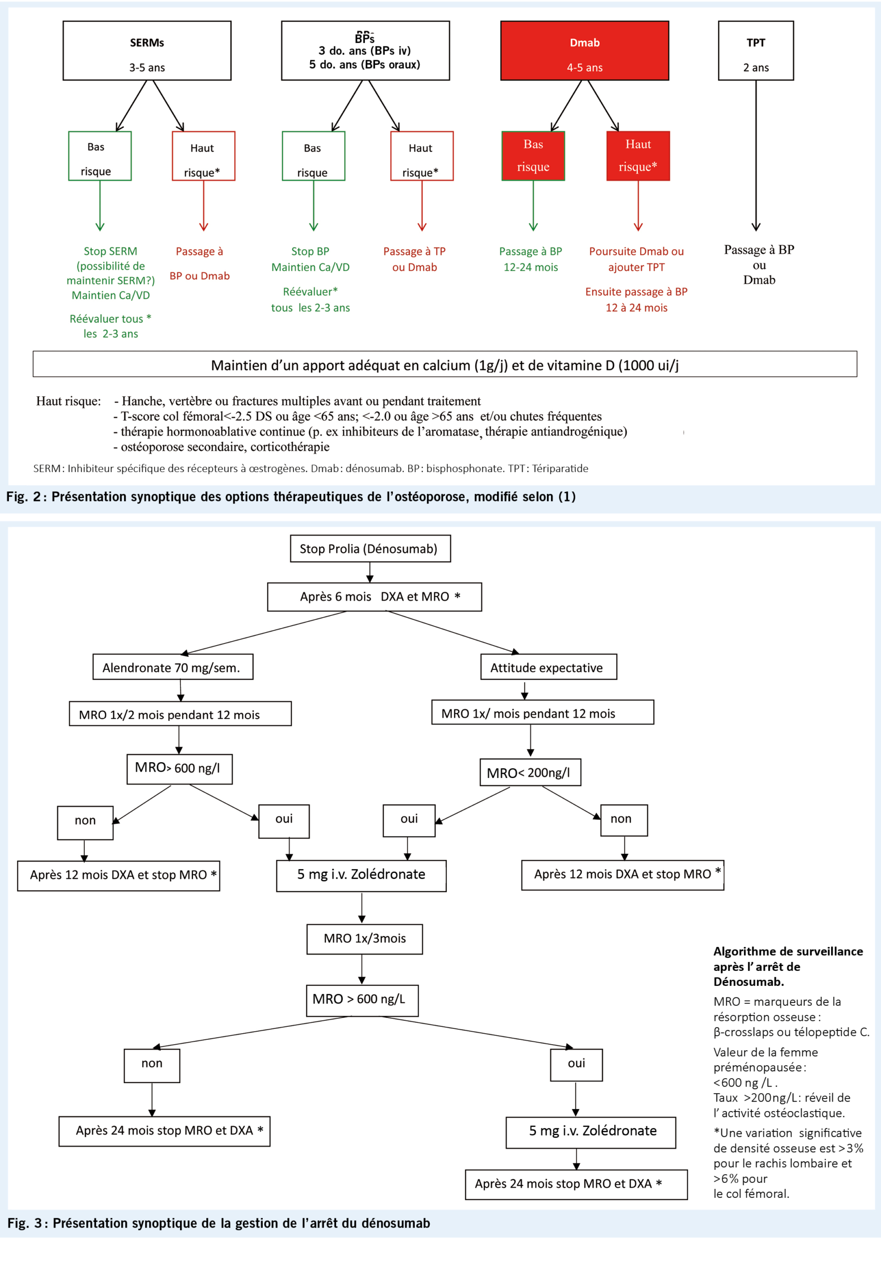 Destinée à l’ ensemble des patients traités par dénosumab, la prise en charge contrôlée dès son arrêt va certainement s’ affiner progressivement et permettre de cibler plus précisément les situations à risque. Dans l’ immédiat, un suivi systématique évitera bien des complications et en particulier leur cortège de souffrances.