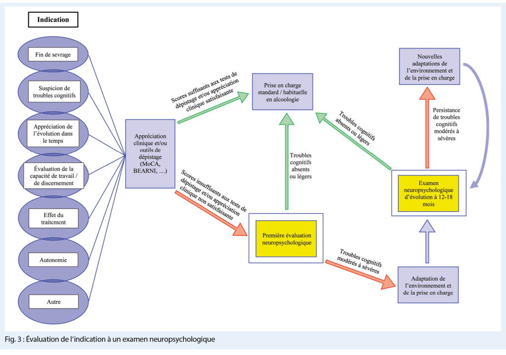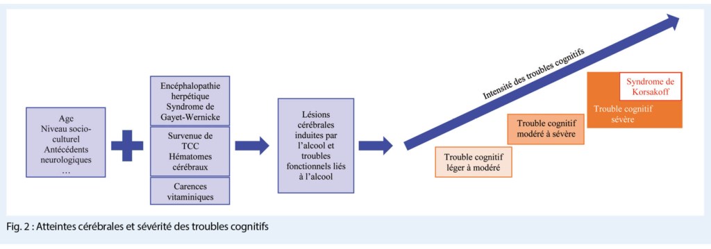 La consommation abusive d’ alcool est fréquemment associée à une atteinte cérébrale et à des troubles neuropsychologiques touchant principalement les fonctions exécutives, mnésiques et de cognition sociale. Nous proposons quelques outils de dépistage de ces troubles, ainsi que les bénéfices de l’ abstinence sur les ressources cognitives.