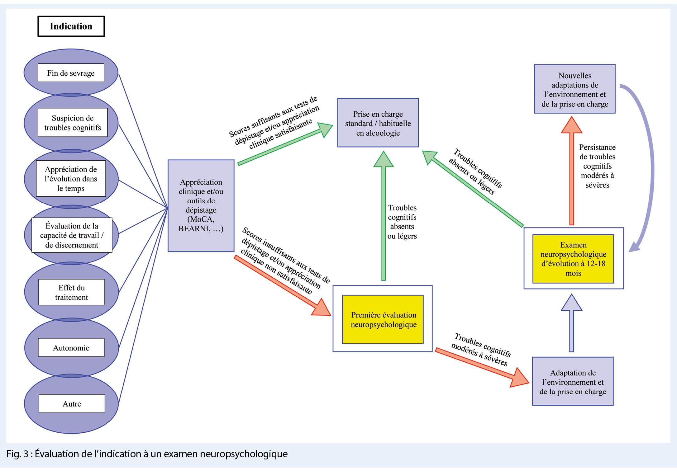 Ces outils d’ évaluation permettent un dépistage : tout score inférieur à la norme ou cliniquement faible devrait faire l’ objet d’ une investigation neuropsychologique approfondie. L’ examen neuropsychologique permettra de quantifier les troubles cognitifs, de participer à l’ appréciation des capacités d’ autonomie et de discernement et de contribuer à une réflexion sur les mesures nécessaires au meilleur encadrement du patient. Lorsqu’ il est répété, il est également précieux pour apprécier l’ évolution des troubles dans le temps (fig. 3).