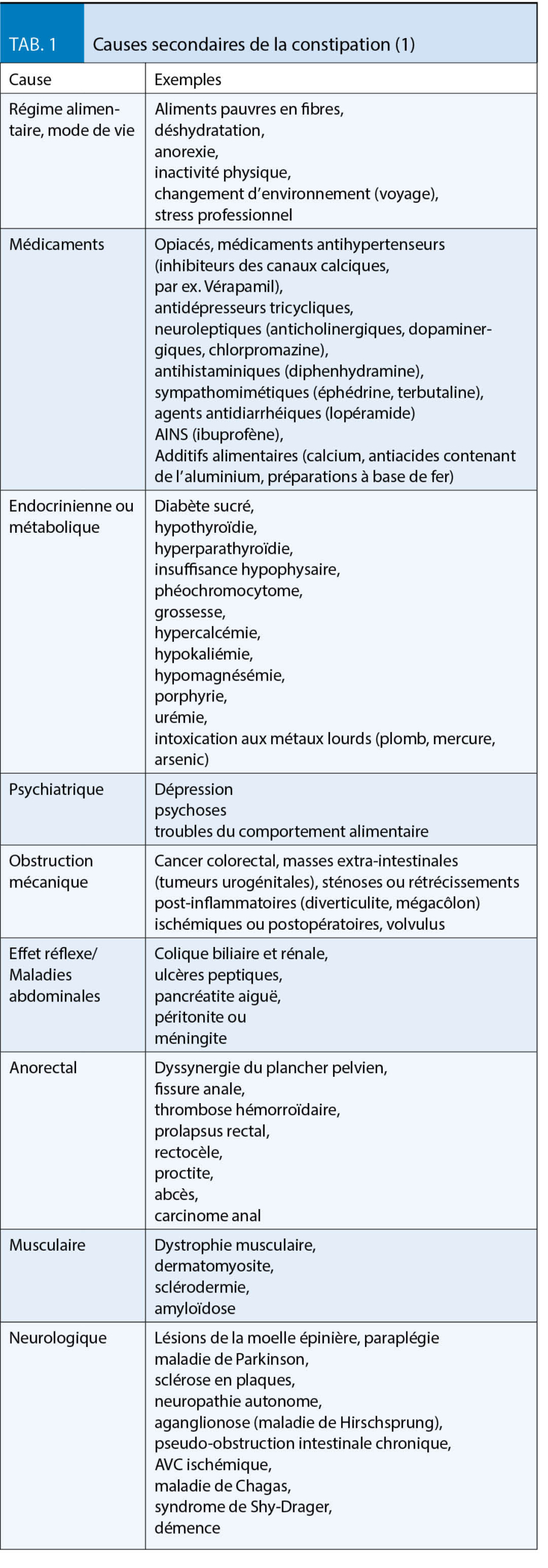 • Pour un traitement différencié de la constipation, il est important de connaître l’ étiologie sous-jacente et d’ exclure les causes secondaires, en particulier les médicaments et le carcinome du côlon.