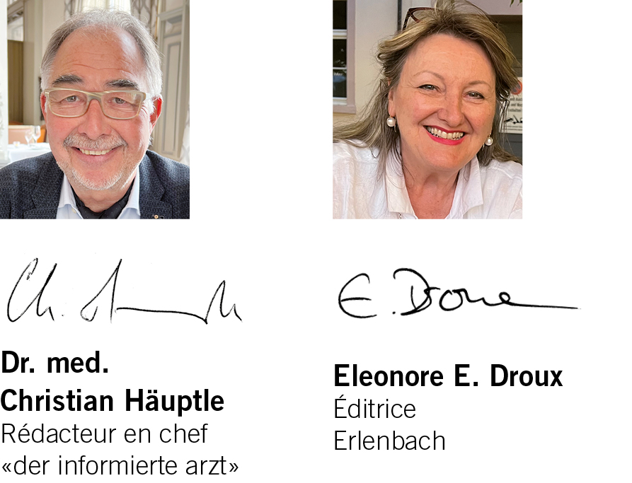« la gazette médicale », la revue de formation continue pour les médecins de famille, continuera d’ exister dans son format éprouvé et apprécié : Les thèmes et les contenus, choisis par les médecins de famille, sont soigneusement traités par des collègues compétents. Nous sommes très contents que le Pr Bernard Waeber, pendant longtemps coéditeur de Praxis pour lequel il continuera son engagement, nous rejoint dans le board éditorial de notre « gazette médicale ».