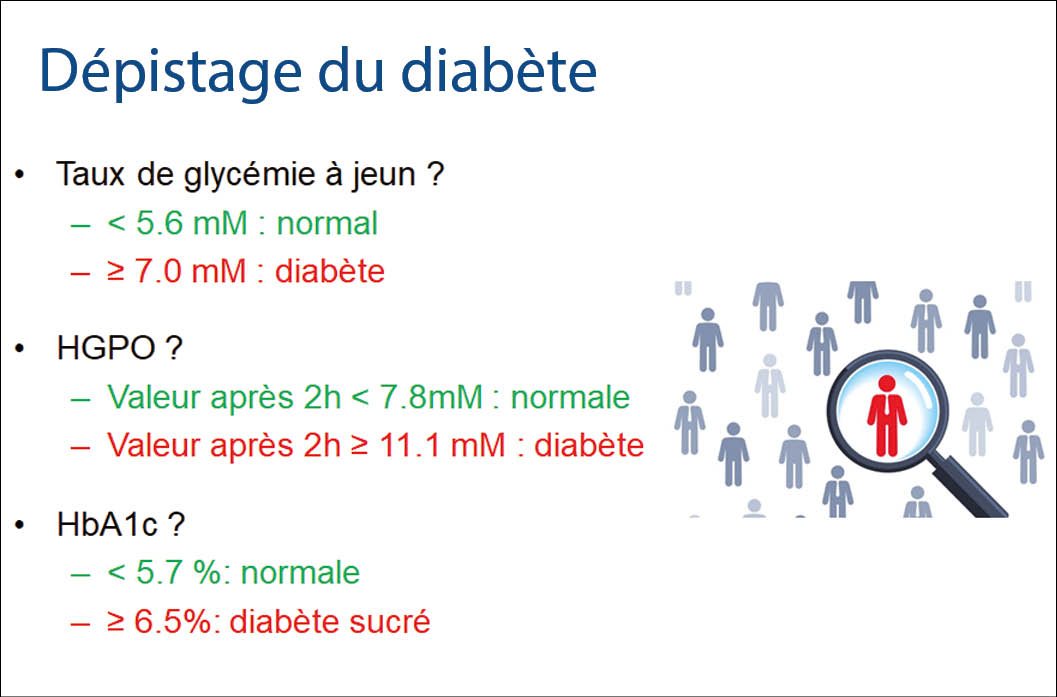 • -Dépistage initial du diabète : glycémie à jeun (GPJ) ? Test de tolérance au glucose par voie orale (HGPO) ? HbA1c ?