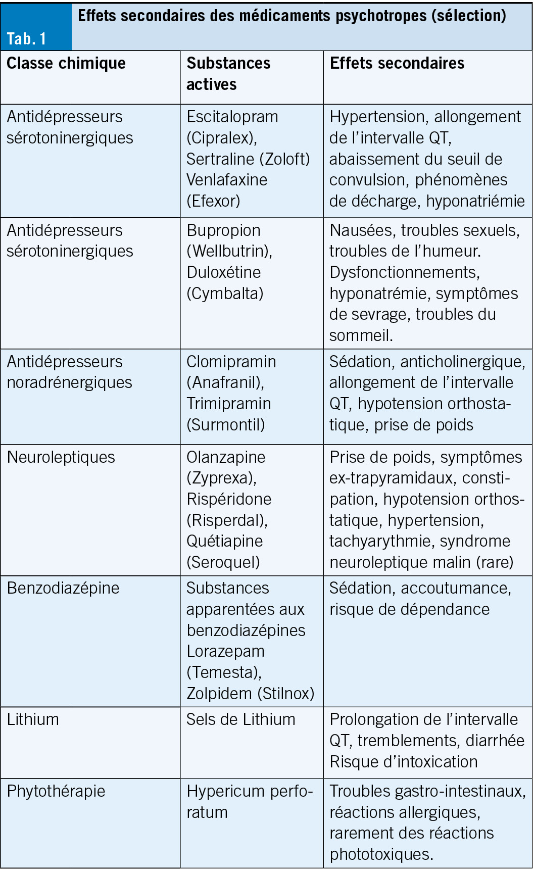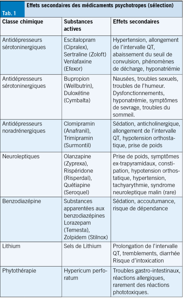 - Les effets secondaires des médicaments psychotropes doivent toujours être pris au sérieux. Même si la prise de médicaments n’ est que de courte durée, il convient d’ adapter la dose ou un changement de médicament.