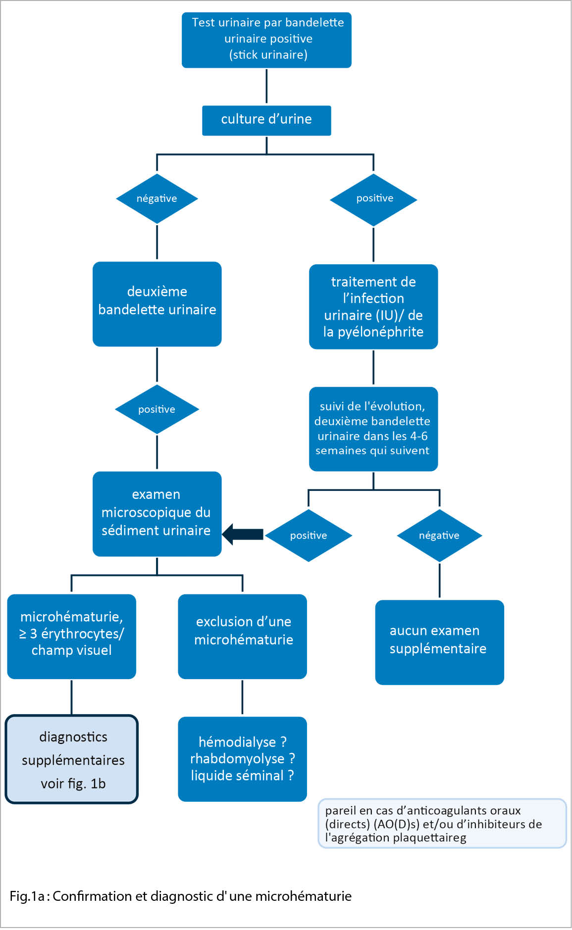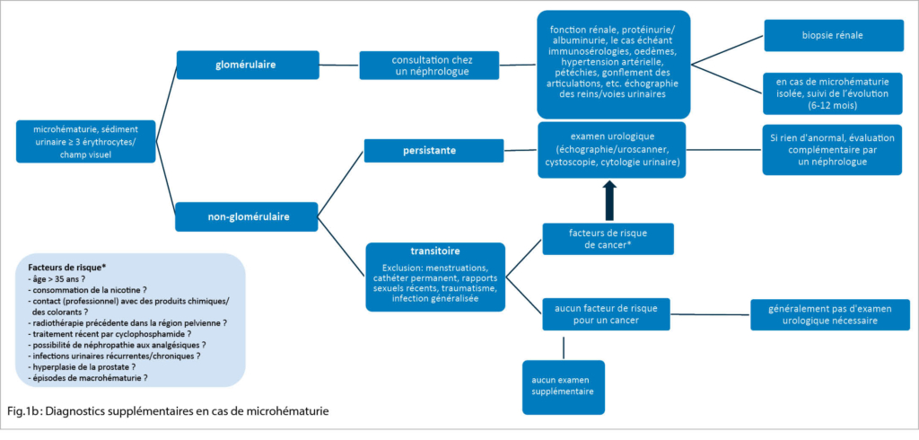 En présence de facteurs de risque de malignité (fig. 1b), il convient également d’ examiner une microhématurie transitoire.