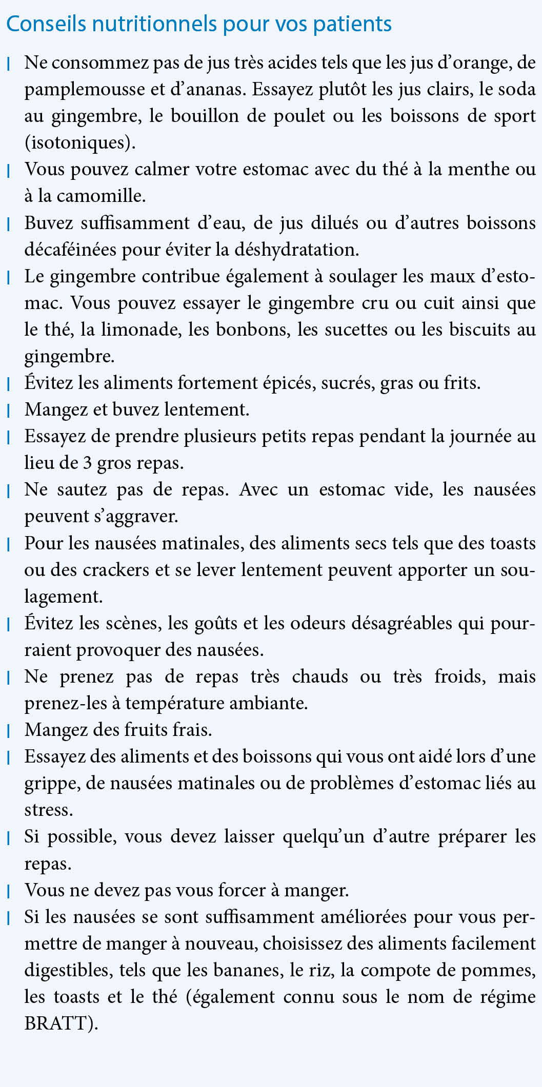 Étapes de clarification pour les patients souffrant de nausées et de vomissements