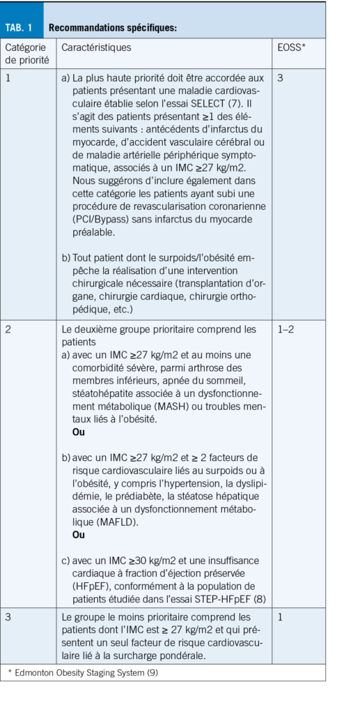 - Recommandations SMOB pour la priorisation du traitement par 2.4 mg de sémaglutide chez les patients souffrant de surpoids ou d’ obésité
