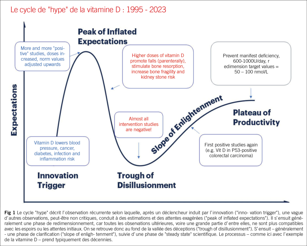 L’ exemple de la vitamine D permet d’ illustrer ce que l’ on appelle le “cycle de hype”.