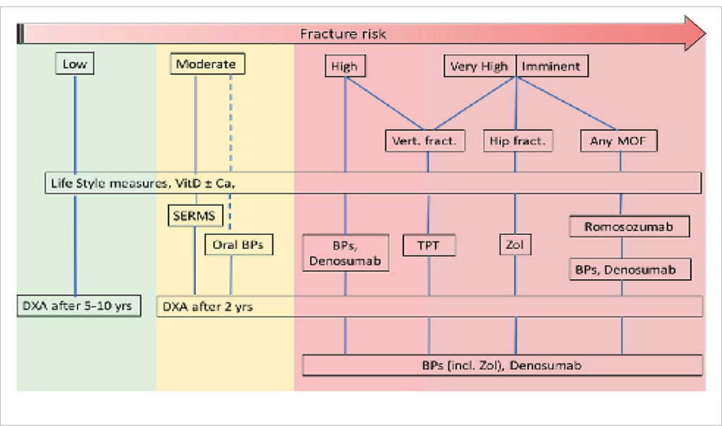 3. Ferrari S, Lippuner K, Lamy O, Meier C. 2020 recommendations for osteoporosis treatment according to fracture risk from the Swiss Association against Osteoporosis (SVGO). Swiss Med Wkly. 2020 Sep 29;150:w20352.