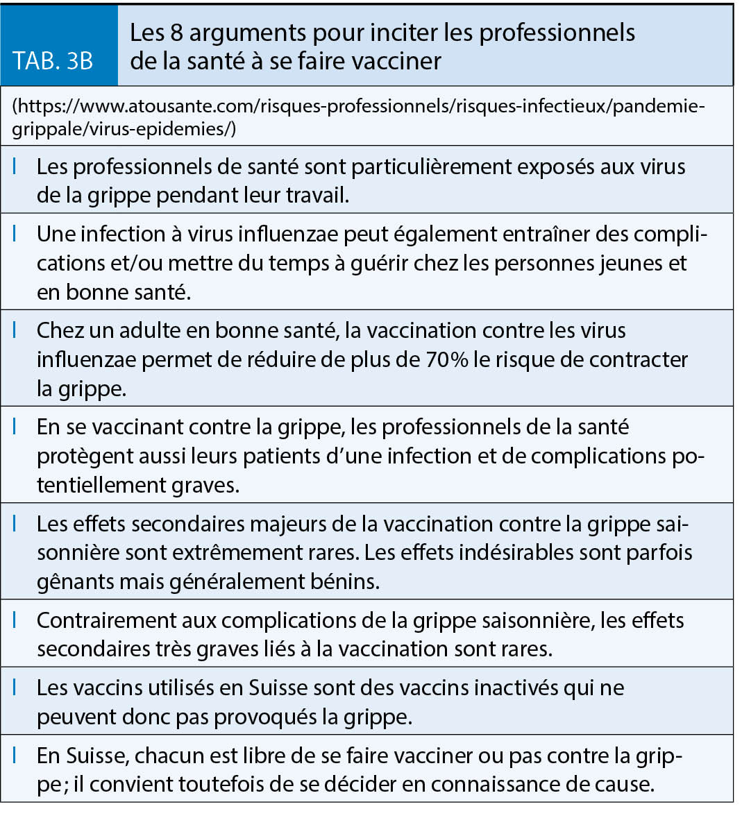 La grippe est l’ infection qui, en Suisse, cause chaque année le plus de décès et notamment parmi les plus vulnérables. Bien que les antiviraux et les vaccins contribuent à réduire le fardeau sanitaire et économique de la grippe, les épidémies continuent de faire des ravages. Si les mesures de protection individuelles (port de masque et hygiène des mains) sont un bon complément, la vaccination reste le pilier en matière de prévention. Il faut continuer à redoubler d’ effort pour améliorer les taux de couverture vaccinale chez les patients à risque et les professionnels de santé
