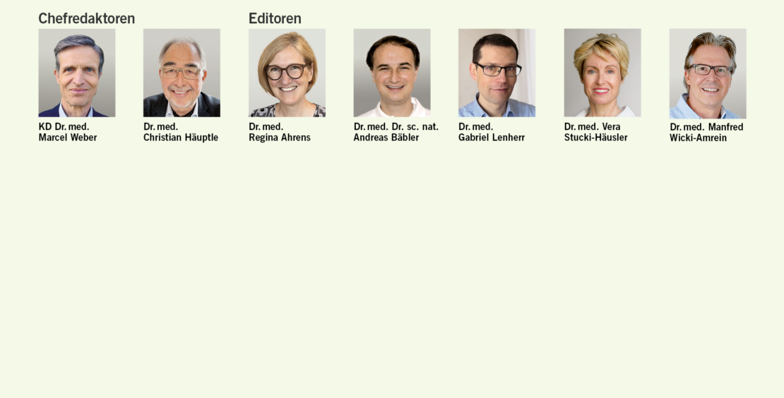 Ein Hausärzte-Board und ein interdisziplinäres Fach-Board garantieren die praxisrelevante und fundierte Themenwahl. Dazu zählen in jedem Heft ein Schwerpunkt und umfassende Übersichten zu den wichtigsten Hausarztthemen einschliesslich der Labormedizin.