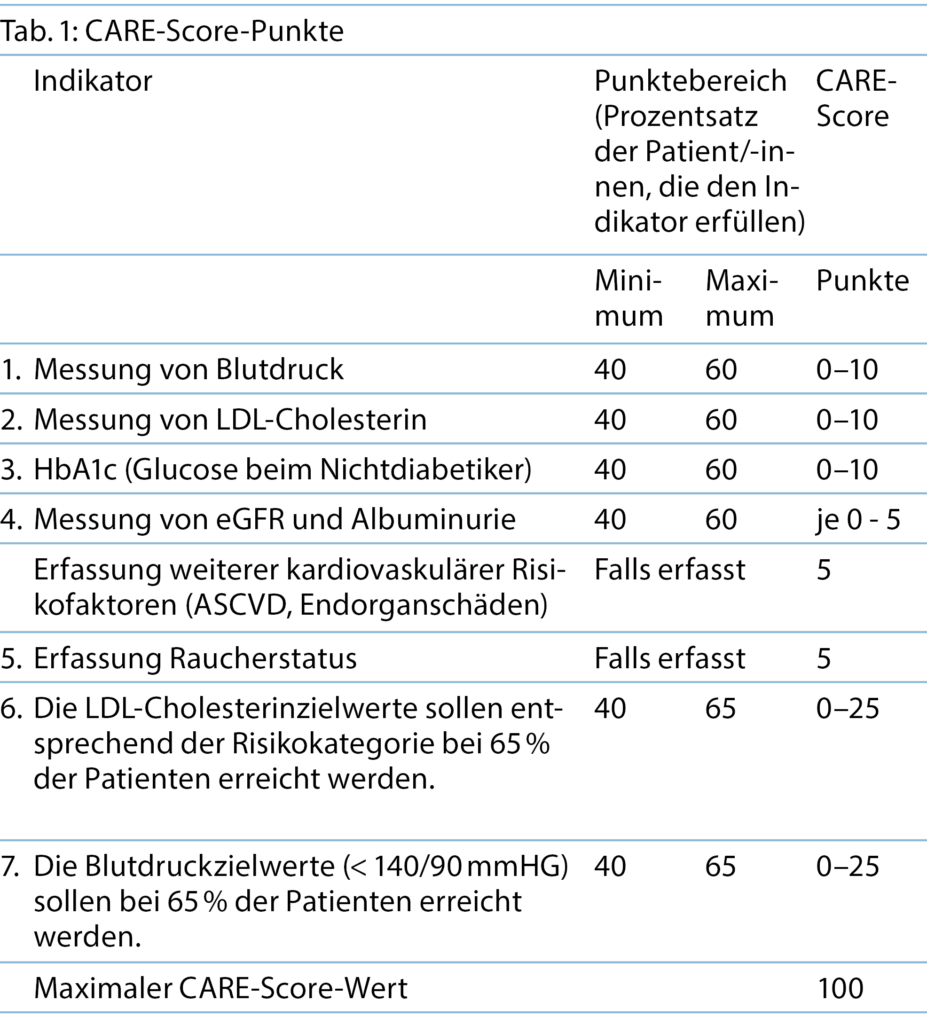 - CARE-(CArdiovasculaR prEvention) Score – ein Instrument zur Erfassung der Versorgungsqualität von kardiovaskulären Risikopatient/-innen in der Hausarztpraxis