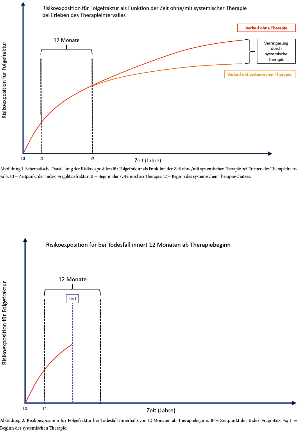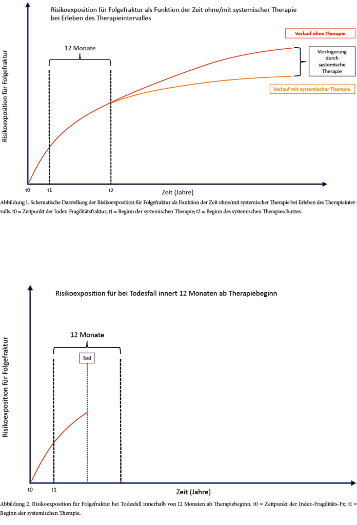 - Es wird eine Latenzzeit von einem Jahr ab Therapiebeginn bis zum Einsetzen der Medikamentenwirkung im Sinn einer Reduktion des Refrakturrisikos angenommen.