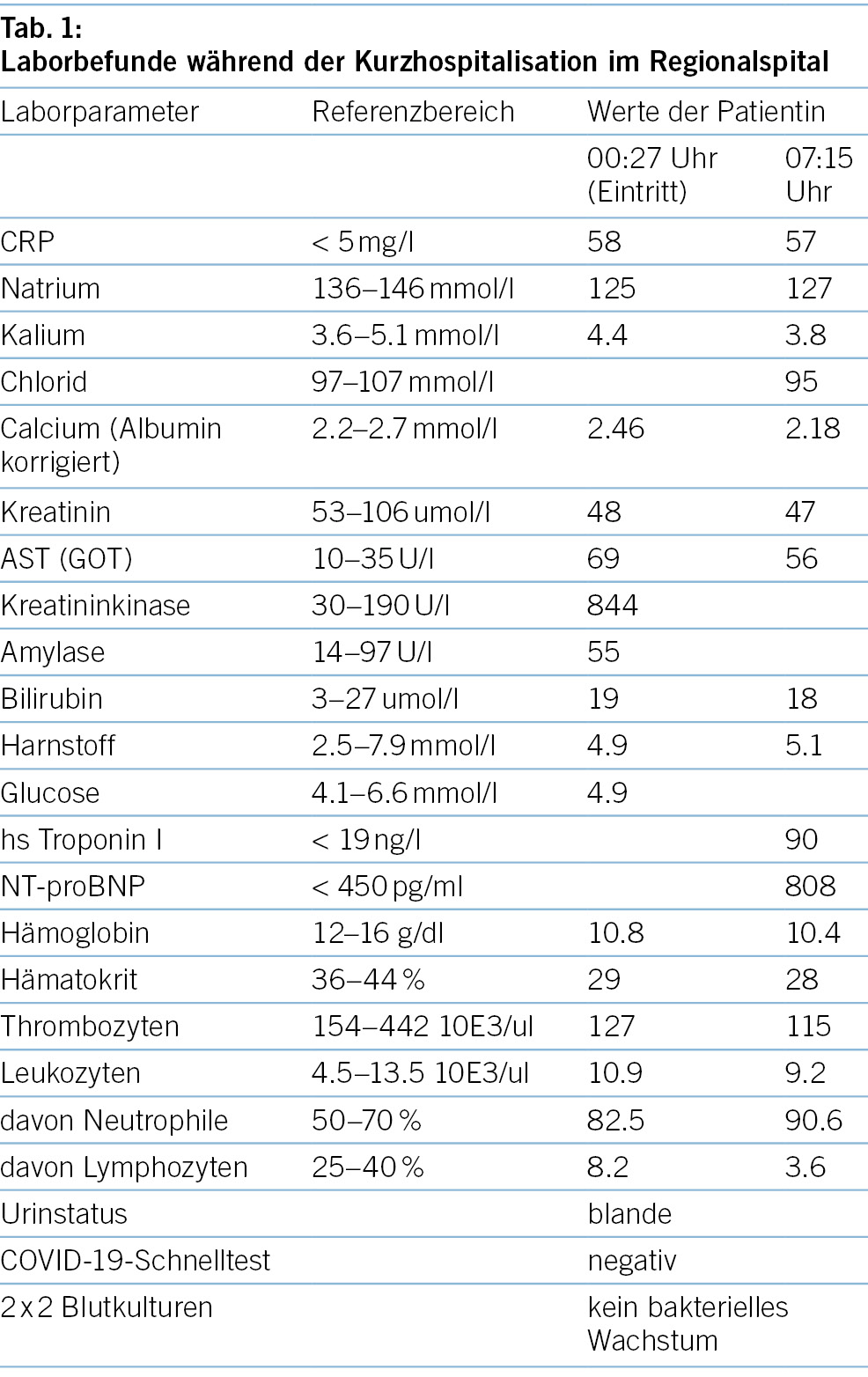 Status und Labor (Tabelle 1)