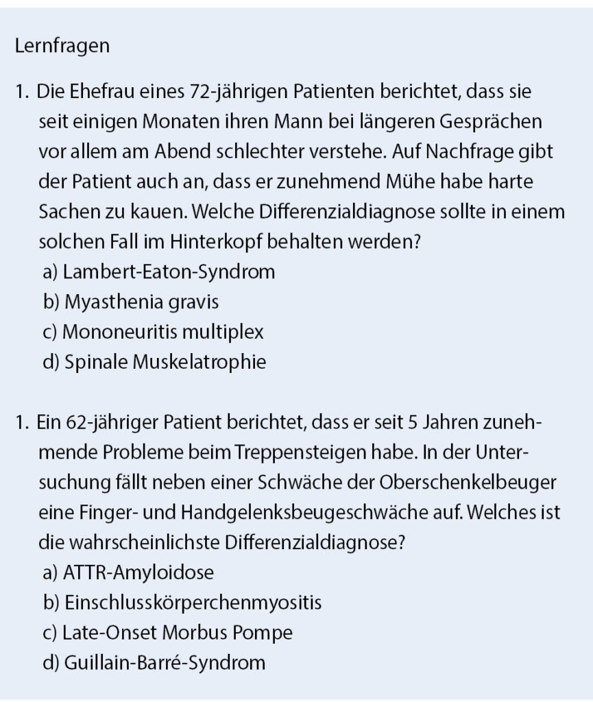 1. Shefner JM. Approach to the patient with muscle weakness. Post TW, ed. UpToDate. Waltham, MA: UpToDate Inc. http:// www.uptodate.com; letzter Zugriff: 11.11.2022.