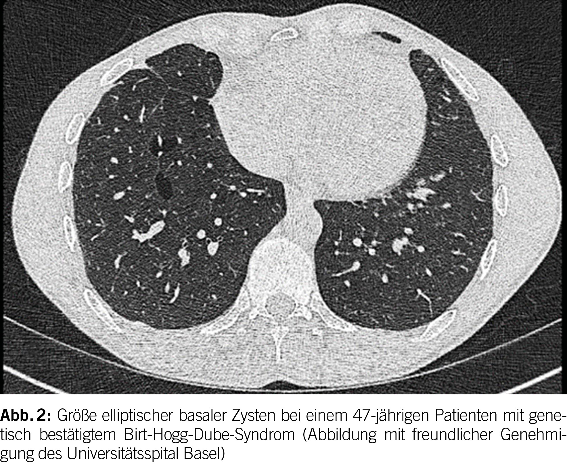 Die Identifikation eines Pneumothorax bei jungen Personen mit einer positiven Familienanamnese bezüglich Pneumothoraces oder Nierentumoren sollte eine Untersuchung auf das Birt-Hogg-Dubé-Syndrom nach sich ziehen. Diese Evaluation umfasst eine hochauflösende Computertomographie (HRCT), eine dermatologisches Konsil mit Hautbiopsie sowie genetische Testung. Eine Lungenbiopsie ist bei typischer Konstellation respektive nachgewiesener Mutation nicht indiziert.