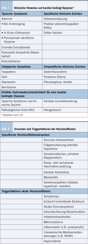 Das Leitsymptom Dyspnoe ist eine häufige Fragestellung für niedergelassene wie auch Spitalärzte, und die Ursachen unterscheiden sich im ambulanten oder Spitalsetting zum Teil deutlich (1): stehen in der Hausarztpraxis eher infektiöse oder respiratorische Ursachen im Vordergrund, sind in der Notfallmedizin häufiger kardiale Gründe anzutreffen.