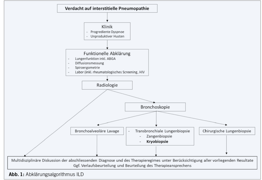 Das Spektrum der interventionellen Möglichkeiten der Abklärung einer unklaren interstitiellen Pneumopathie hat sich um die Kryobiopsie erweitert, womit eine rasche histologische Diagnosesicherung ermöglicht wird.