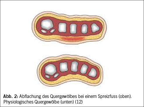 Beim Spreizfuss (Pes transversoplanus), welcher oft mit dem Hallux valgus vergesellschaftet ist, weichen die Mittelfussknochen auseinander, und das Quergewölbe flacht sich ab (Abb. 2).