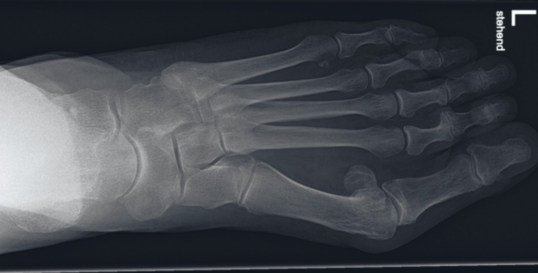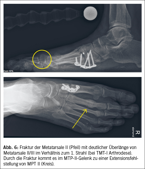 Durch Frakturen an den Metatarsalia kann es zu Fehlstellungen und ebenfalls nicht physiologischen Belastungen in den MTP-Gelenken kommen (Abb. 6).