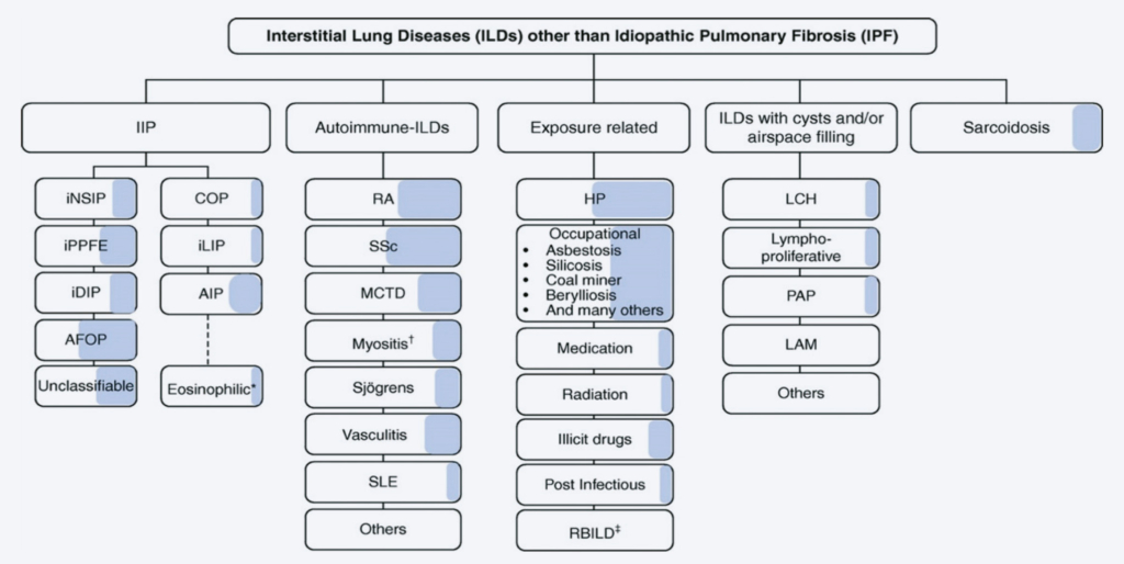 Generell handelt es sich um eine Gruppe der interstitiellen Lungenerkrankung mit heterogener Ätiologie, welche per definitionem nicht den Kriterien der IPF entspricht und unter etablierter initialer Standardtherapie eine Verschlechterung, im Sinne einer progredienten Fibrosierung aufweist.